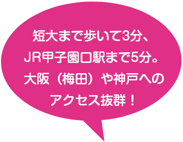 - 通学や外出に便利で時間が有効に使えること。平日の夕食は炊事の必要がありません。休みには大阪や神戸によく出かけ、甲子園球場やUSJにも何度も行きました。