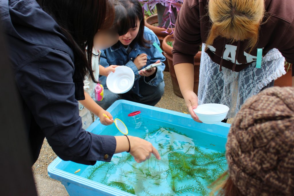 恒例の「植木市」や「メダカすくい」に加え、今年は「スーパーボールすくい」「たこ焼き」「ワッフル」「ドリンク」など学生主体の模擬店が登場。