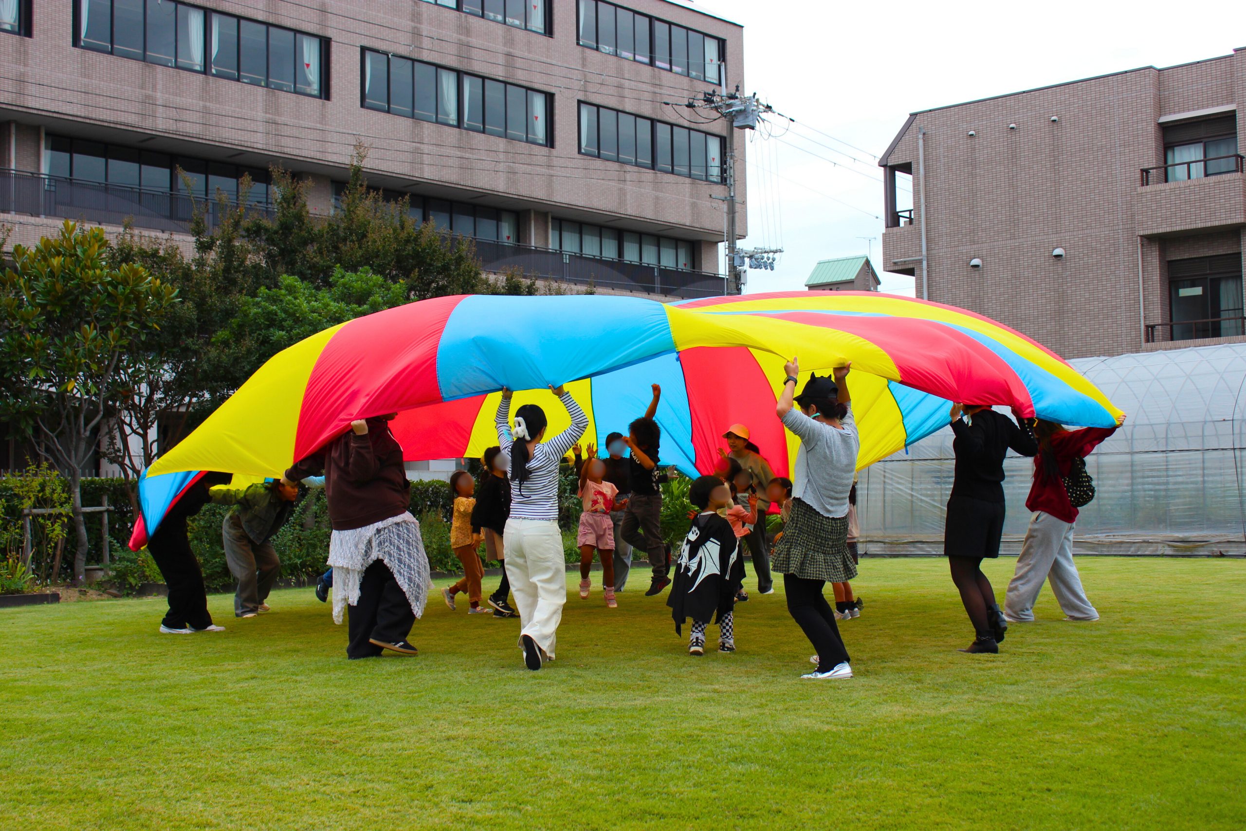 芝生広場での「パラバルーン」や学生による「ダンス」では、歓声と笑顔があふれ、見守る大人たちも心弾むひとときに。